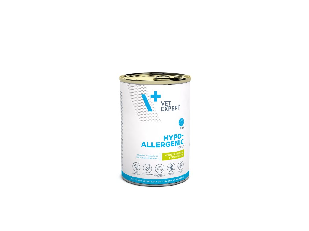 Vyvážené dietní krmivo pro dospělé psy, doporučené ke snížení nesnášenlivosti složek a živin. HYPOALLERGENIC INSECT obsahuje unikátní živočišné bílkoviny z larev hmyzu Hermetia illucens jako jediný zdroj živočišných bílkovin, což minimalizuje riziko alergie na živočišné bílkoviny.